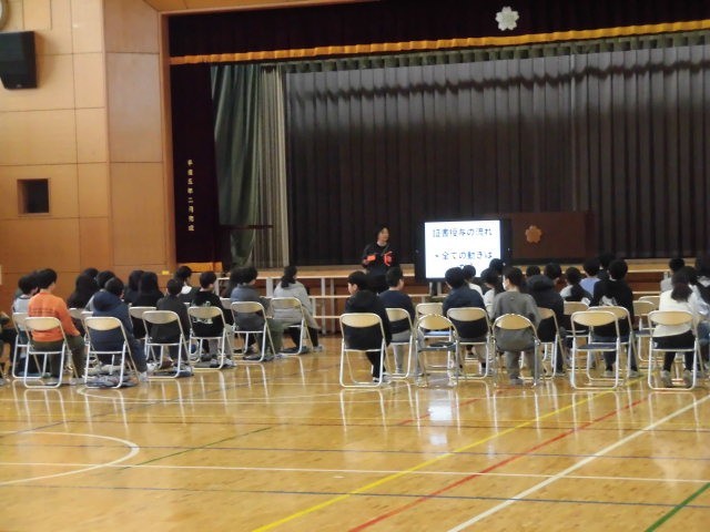 卒業証書の受け取り方や動きなどを教わっています。子どもたちはしっかりと話を聞いています。自分たちの卒業をしっかりとした形で行いたいという6年生の気持ちが伝わってきました。