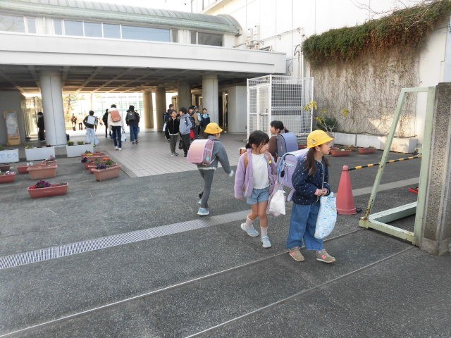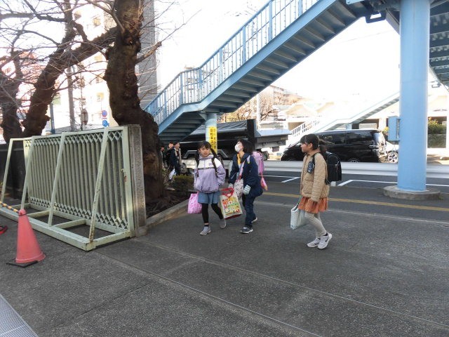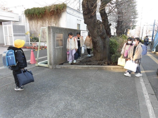 月曜なので体操着や上履きなど多くの荷物を持って、子どもたちは登校しています。
