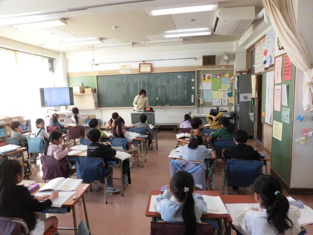 1年生の授業は国語です。物語「ずうっと ずっと だいすきだよ」の学習です。