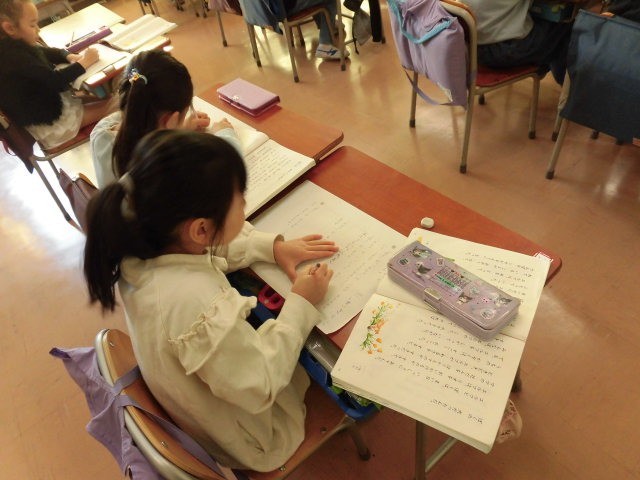 子どもたちは、読み取ったことを一生懸命にワークシートに書いています。