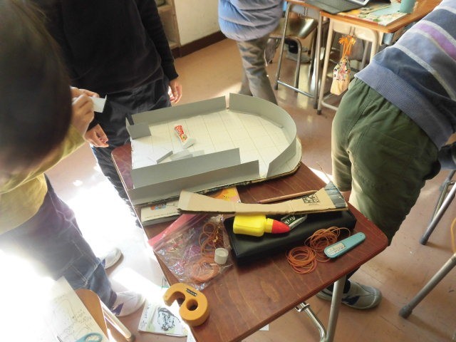 今まで理科で学習したことを生かして、おもちゃ作りをしています。