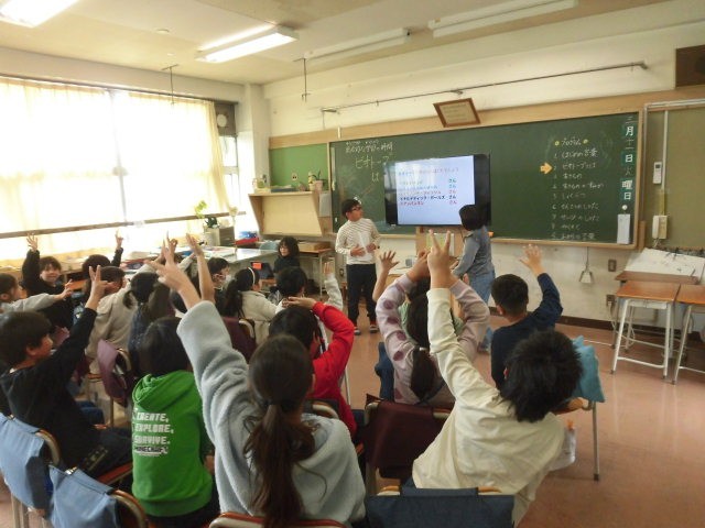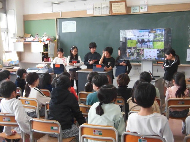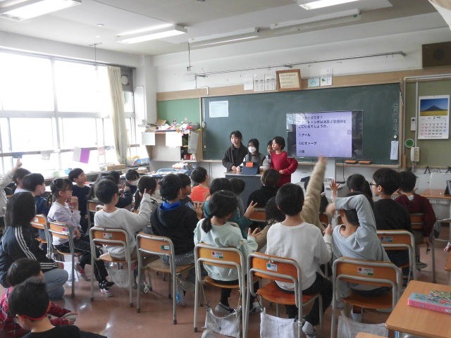 3年生はビオトープの学習のまとめです。1年間ビオトーププギルドの方々に教えていただいていたビオトープ学習のまとめを2年生に向けて発表会を行いました。