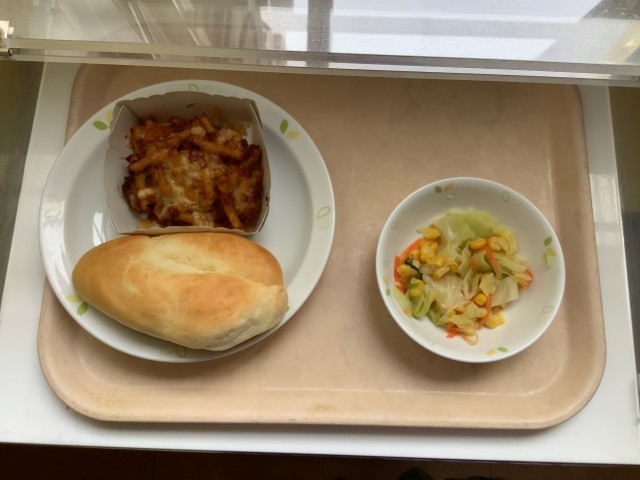 牛乳・ソフトフランスパン・かぼちゃとペンネのグラタン・コーンフレンチサラダ
