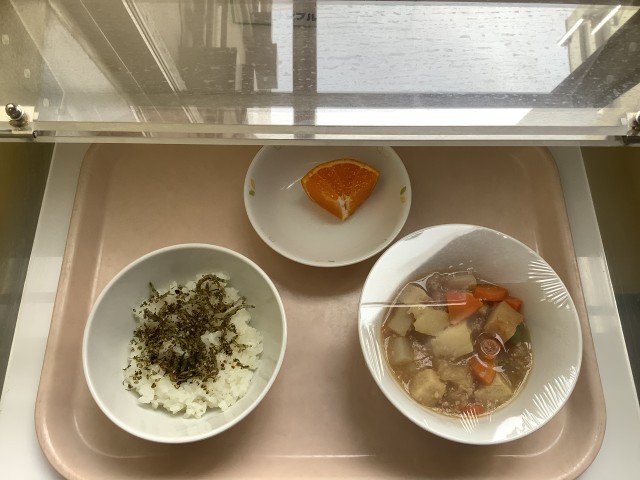 牛乳・ご飯・ふりかけ・じゃがいものそぼろ煮・果物(デコポン)