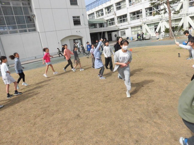 4年生の遊びに自分から入ろうとする6年生。とてもすてきな6年生です。そういうすてきな6年生との時間もあとわずかになってしまいました。6年生との時間を大切にしたいです。