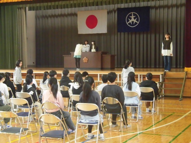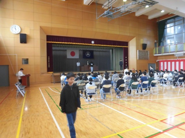 6年生は体育館で卒業式の練習をしていました。卒業証書授与の練習です。