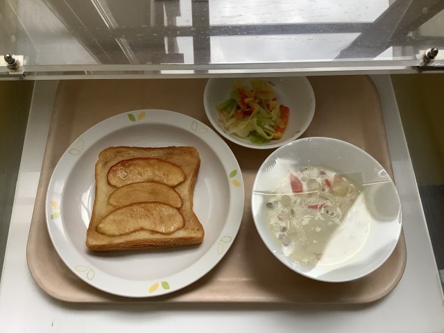 今日は、子供たちに人気のアップルシナモントーストを提供しました。