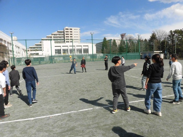 6年生は校庭で学年レクをやっていました。