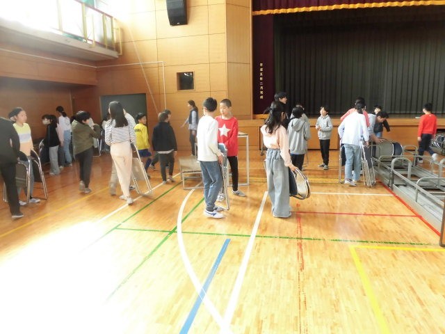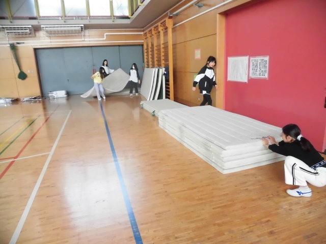 1時間目、6年生は入学式の会場の片づけを行っていました。朝から学校のために活躍する6年生です。マットなどの体育の道具も授業で使えるようにもとに戻しています。6年生は学校のためにいろいろなところで活躍してくれています。