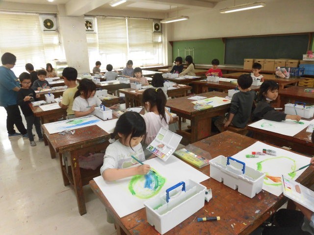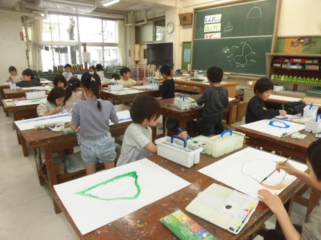 「見て。」「わたしの島すごいでしょ。」と、たくさん声をかけられました。子どもたちは楽しみながら、筆を動かしていました。