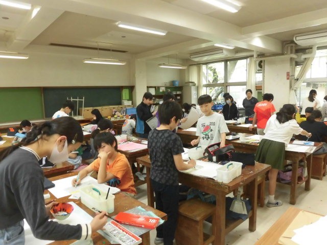 描く花の種類や背景の色など各自工夫して思い思いに花の絵を描いています。一人ひとりのこだわりを感じ、見ていてもとても楽ししくなります。