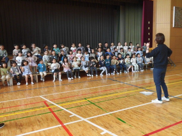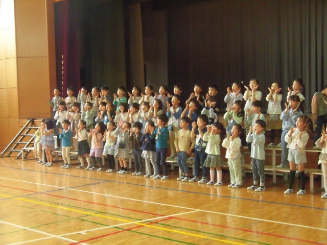 ふりを付けながら歌を歌っています。1年生みんなとても楽しそうです。この1年生の笑顔を見たら、2年生から6年生までのお兄さんお姉さんは、きっと嬉しくなるでしょう。1年生を迎える会が楽しみです。