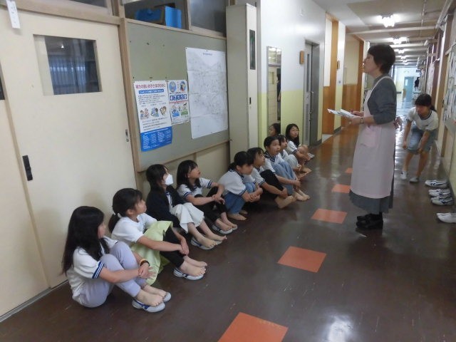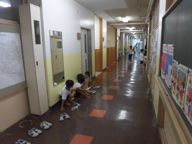 今日は1年生と4年生の心臓検診がありました。クラスごとにランチルームに集まり、廊下で説明を聞きます。自分の順番になったら、中に入っていきます。小学校では1年生と4年生でしか行わない検診です。子どもたちの中には、何が始まるのか不安だった人もいたかもしれませんね。