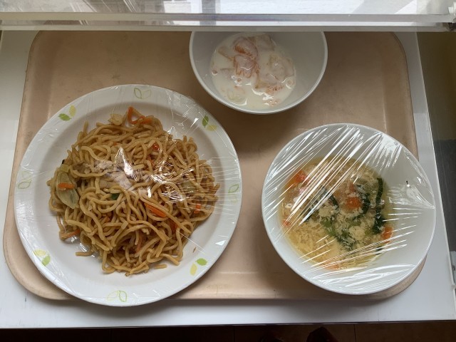 今日は、子供たちに人気の焼きそばにキムチを入れて提供しました。