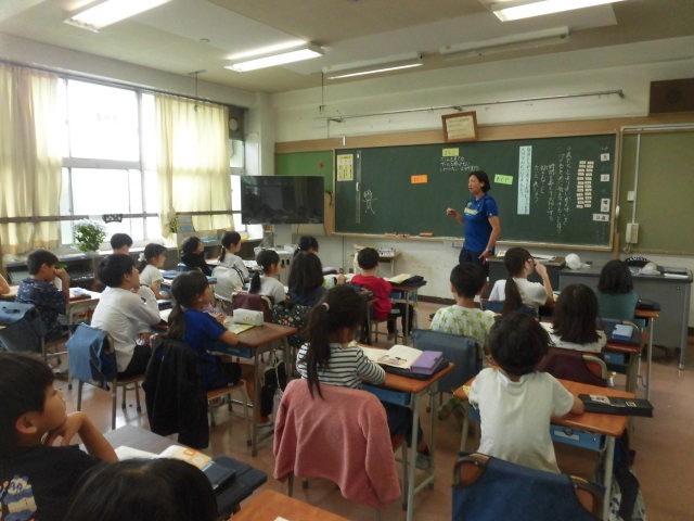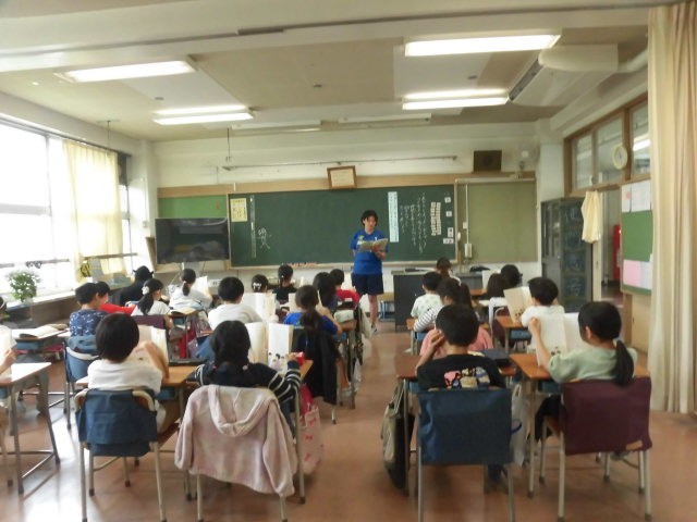 今日は、隣のクラスの先生が授業をしています。道徳の授業は、先生が交代をしながら担当します。いろいろな先生との結びつきを持ってもらいたいと考えています。