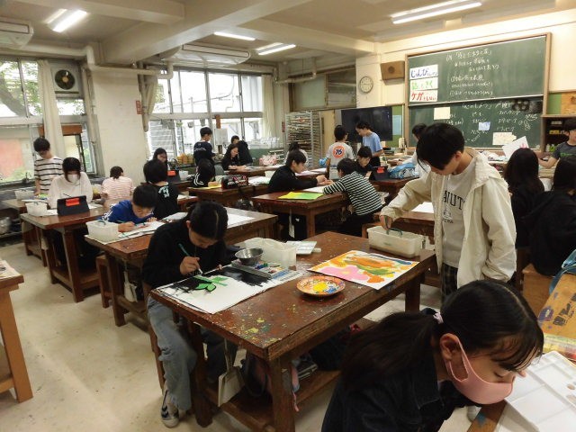 6年生の授業は図工です。花を題材にして絵を描いています。