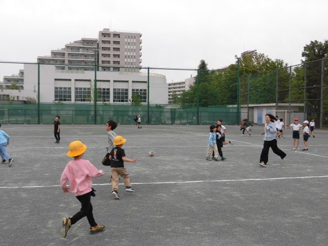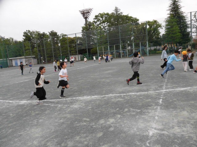 ラインが引いてあるだけで、子どもたちはそのラインを使って走り始めます。競争やリレーを始めるのです。子どもたちにとって、どんなものでも楽しい遊びの題材になるようです。