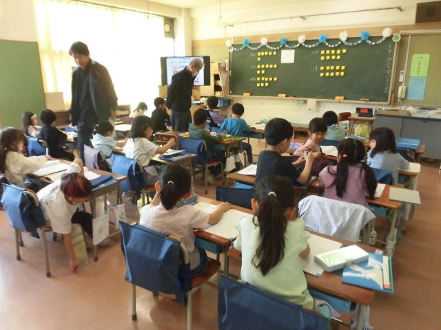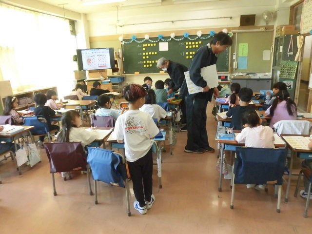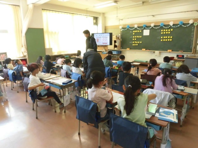 1年生の授業は算数です。ブロックを使いながらものの数を数えています。数を数えることはできても、それを実際に操作することが大切になってきます。1年生はしっかりと先生の話を聞いていました。