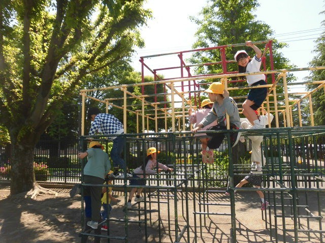 今日は1年生とジャングルジムで遊びました。ジャングルジムの上の方は、とても怖く感じてしまいます。怖くなって、一人で大声を出してしまいました。1年生は平気な顔をしています。