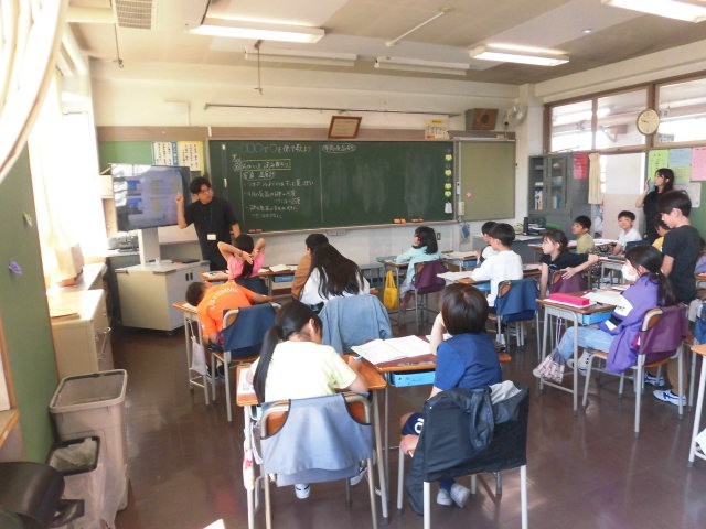 日本とブラジルの気温が書いてある表を見ています。一目見て、表から読み取れることはどんなことなのでしょう。これが、グラフになったらどうなるのでしょう。子どもたちは、気付いたことを挙手して発言しています。