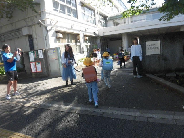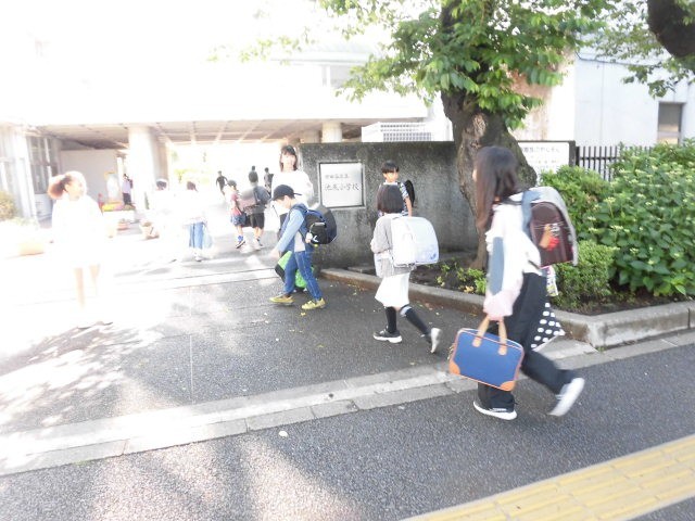 代表委員会のあいさつ運動の担当の人たちが、門に立ってあいさつをしています。朝から、気持ちのよいあいさつの声が響いています。