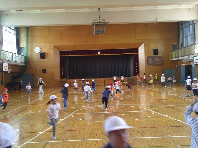 体育館と校庭に分かれてすべての班が楽しく遊びました。