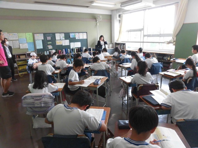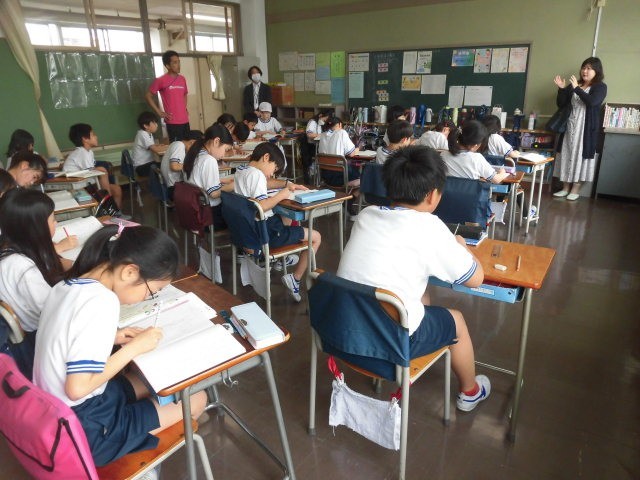 参観にいらした保護者の方にお願いして、小学校の時に夢中になったことを話していただきました。子どもたちは真剣に話を聞き、メモを取っています。お母さんがお話をしている姿を見て、当の4年生はとても嬉しそうな顔をしていました。