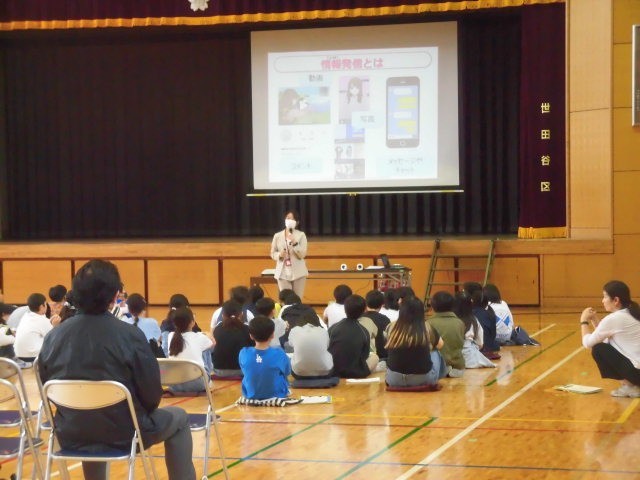 6年生は体育館に集まり、ネットリテラシー醸成講座を行いました。