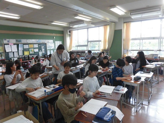 難しい問題ですが、子どもたちは頭をひねりながら考えています。今度の運動会で損をしないように、内側を走るように心掛けてくれそうですね。