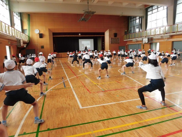 5年生6年生は、体育館に集まり運動会の表現の練習をしていました。