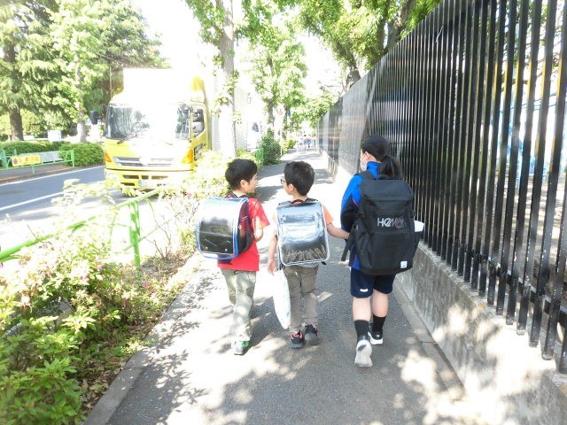 子どもたちが登校してきました。子どもたちは元気に登校しています。