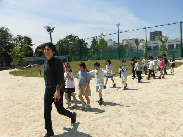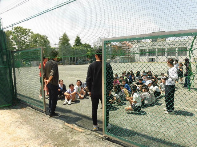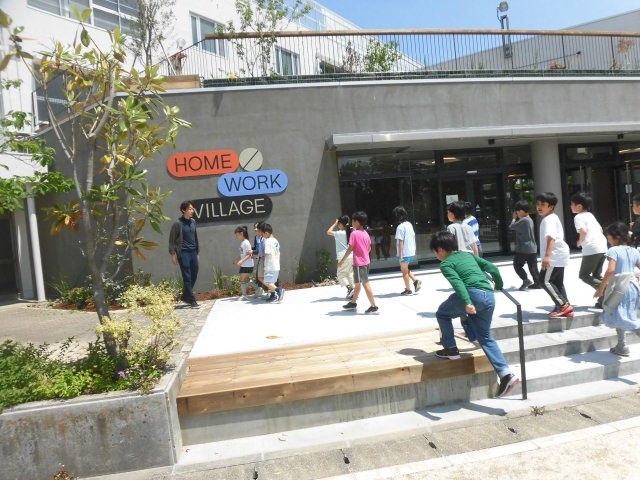 ホームワークビレジの所長さんからあいさつをもらい、校庭の仕切りをはずし、ホームワークビレジに入りました。