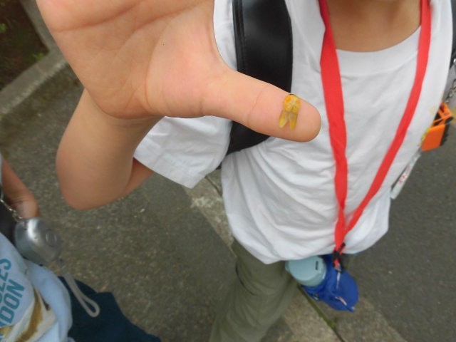 登校中につかまえたサナギから帰ったばかりのテントウムシを見せてくれる人もいました。まだ、黄色です。とても貴重なものを見せてもらいました。子どもたちはいろいろなものを見つける天才です。