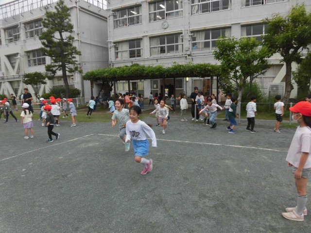 今日の朝の活動は朝遊びです。子どもたちは楽しそうに遊んでいます。おにごっこが始まるときは、みんなが一斉に走り出します。ものすごい勢いです。6年生のおにごっこはさすがに迫力があります。見ていても、目を引く速さです。