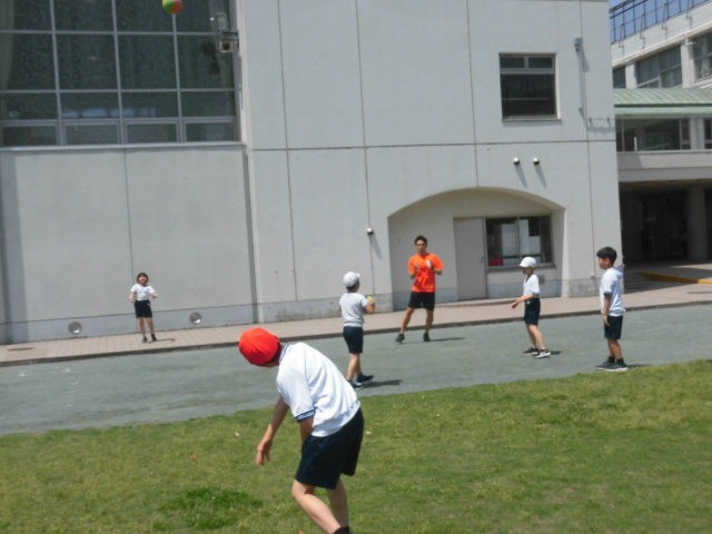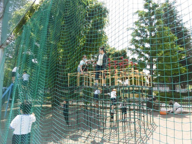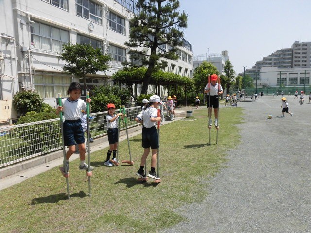 一輪車や竹馬、そして、固定遊具なども人気です。日差しが強く休み時間のおわりには、子どもたちの額には汗が光っていました。