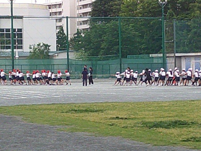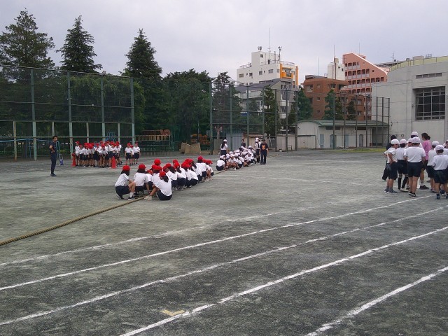 初めて団体競技「追いかけつなひき!」の練習をしました。