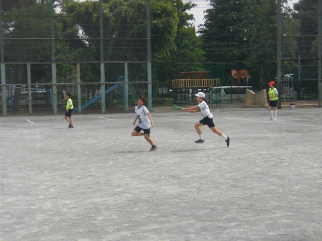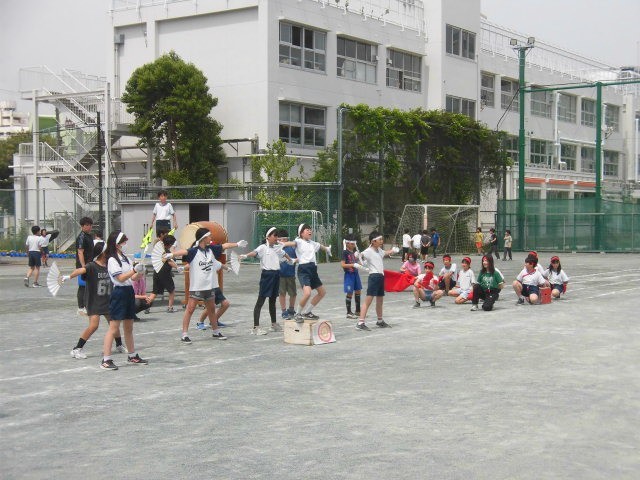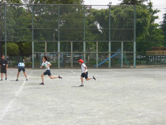 お昼の時間、リレーの選手が練習を始めました。バトンパスの練習です。