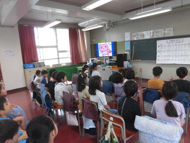 「楽しく」や「あわてて」「泣いているように」など、いろいろな感情を歌いながら表現をしています。子どもたちのその様子が、カメラでおさめた写真では伝わらないのが残念です。