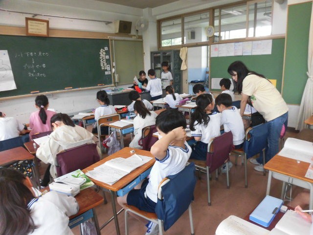 3年生の授業は国語です。運動会招待の文章を書いていました。