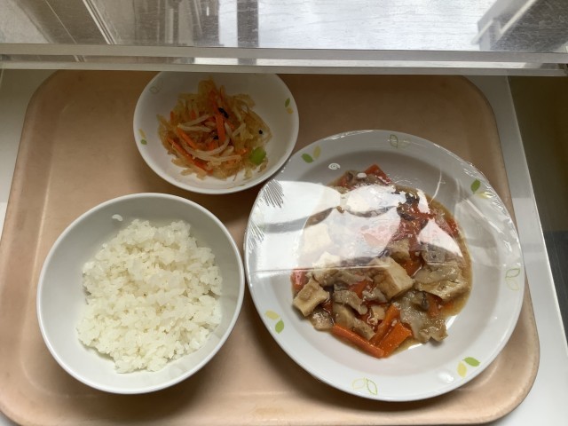 牛乳・ご飯・家常豆腐・糸寒天サラダ