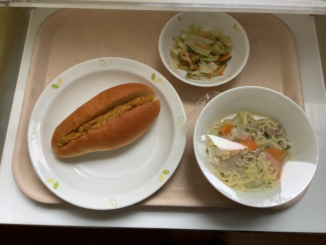 牛乳・大豆ドライカレーサンド・ABCスープ・茹で野菜の玉ねぎドレッシング