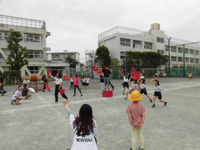 「みんなも大きくなったら、こういうお兄さんお姉さんになるんだよ。」そう言いうと、低学年の人たちは「うん」と、返事をくれました。憧れの存在の応援団です。