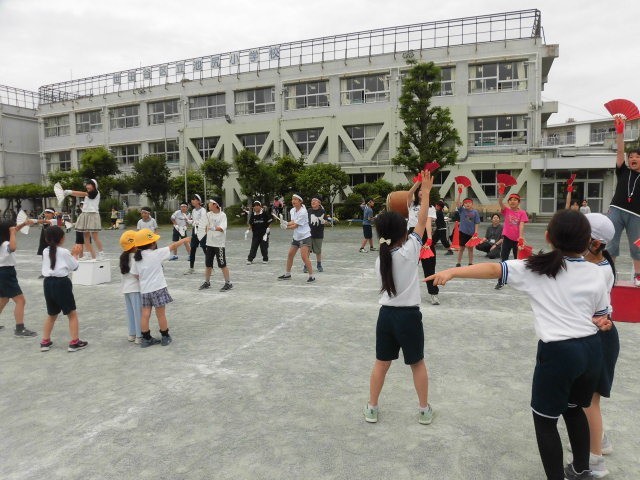 昼休みの時間、応援団が校庭で練習をしていました。明日は雨の予報なので、応援団も校庭での最後の練習になりそうです。