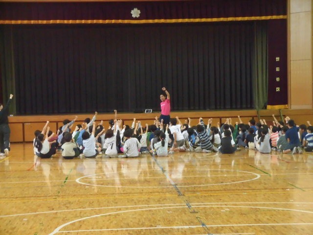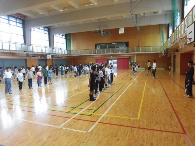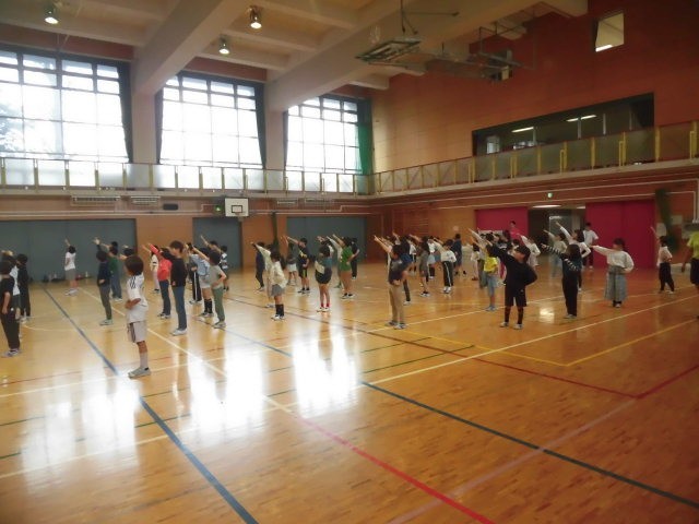 子どもたちは指先などを意識しながら楽しく踊っています。楽しそうな雰囲気が3年生4年生の動きから伝わってきます。とてもすてきです。