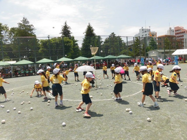 1年生の団体競技玉入れです。途中の踊りがとてもかわいらしいです。