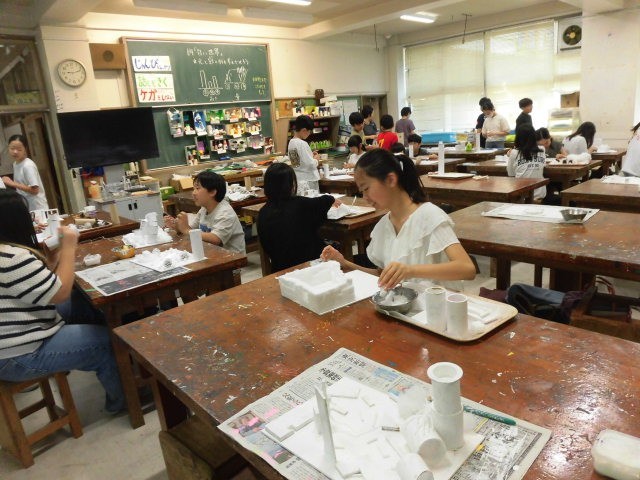 6年生の授業は図工です。「白の世界」と題して、立体作品を作っています。