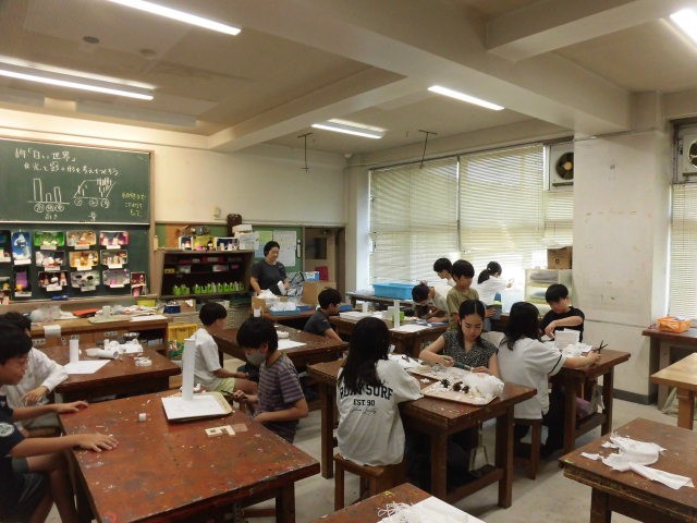 白の絵の具を使って、材料を白の世界に染めています。一人ひとりの作品を見てみると、それぞれの世界が伝わってきます。