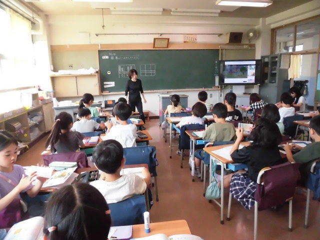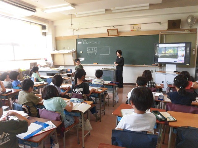 2年生の授業は算数です。位の学習です。位取り表を使って学習をしています。