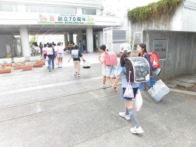 子どもたちが登校してきました。梅雨に入ったかのような蒸し暑い朝です。