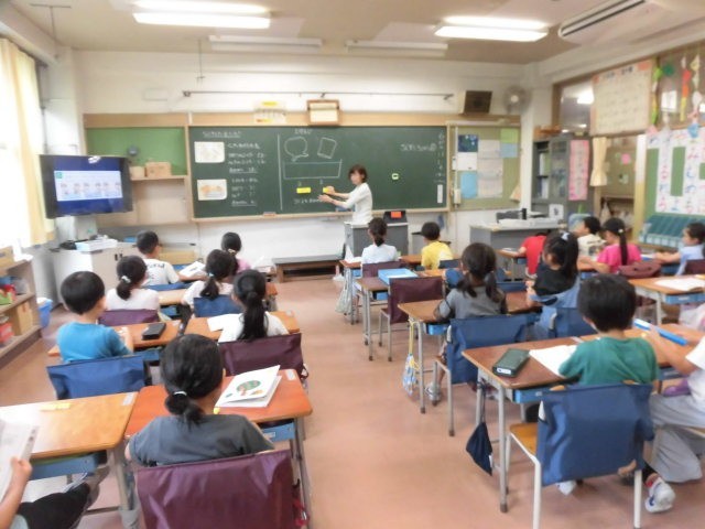 「3と2を合わせると、5」と、何度も子どもたちは口にしています。それを「3+2=5」という式にかえていきました。